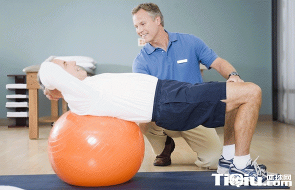 可以买一个健身球来协助训练;日常在家中的时候,就坐在健身球时,用脚移动身体直到身体完成躺在球上。膝盖弯曲呈直角,肩部比臀部略高,颈部伸直,双手在后脑交叉;收缩腹肌慢慢将胸腔拉向骨盆,抬起躯干离开健身球知道腹部感到受力为止。双手不要对头部施加压力,仅仅与头部轻轻地接触即可。坚持片刻后,然后反向练习,并且重复以上动作。