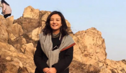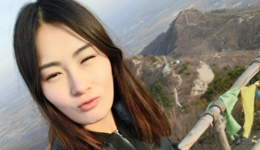 女足王飞登山照 夹克搭牛仔裤动人