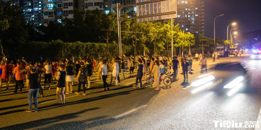 2016年05月05日,福建省福州市,一群大妈占据了站东路的2条机动车道和非机动车道夜跳广场舞,机动车小心翼翼慢行通过避让“公路霸王花”。站东路是福州火车站和北三环路交叉路口的一条今年春节通车的城市机动车道,方便分流和连接火车站公交枢纽与二环路及三环路的重要通道。但从道路开始修建直到通车之后,一直成为附近居民跳广场舞的场地。左右两个小区之间短短几百米的路上,每到夜晚就会聚集5-6个广场舞群体,道路安全存在重大隐患。